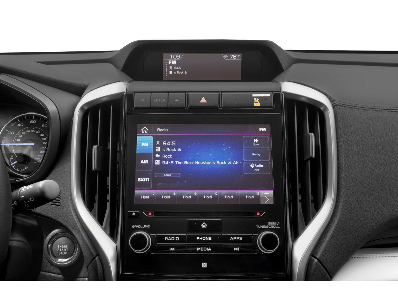 - Radio: Subaru STARLINK 8.0" Multimedia Plus System -inc: AM/FM stereo HD Radio w/single disc CD player, MP3/WMA/CRR/RW file capability, multi-touch gesture high resolution display screen, voice activated controls, Bluetooth® audio streaming and hands-free phone connectivity (applicable w/compatible cell phone), Bluetooth® hands-free SMS text messaging connectivity (applicable w/compatible cell phone), Near Field Communication (NFC), iPod control capability, SiriusXM All Access radio (4 months free trial/subscription required after), SiriusXM Travel Link (4 months free trial/subscription required after), smartphone integration for Aha, Android Auto, CarPlay, Pandora and STARLINK cloud applications, USB and Over The Air (OTA) audio system update, steering wheel controls for audio and Bluetooth®, 6 speakers, 3.5mm auxiliary input jack and front, second and third row dual USB ports