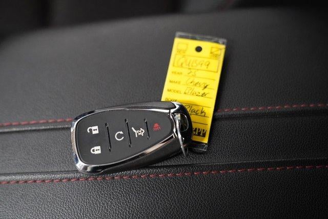 Black 2025 Chevrolet Blazer RS FWD 9-Speed Automatic with Overdrive 3.6L V6 SIDI Blazer RS, 4D Sport Utility, 3.6L V6 SIDI, 9-Speed Automatic with Overdrive, FWD, Black, Jet Black With Red Accents Leather, Alloy wheels, Apple CarPlay/Android Auto, Auto High-beam Headlights, Heated door mirrors, Heated front seats, Navigation System, Power Liftgate, Preferred Equipment Group 1RS, Premium audio system: Chevrolet Infotainment 3 Premium, Remote keyless entry.19/26 City/Highway MPG
